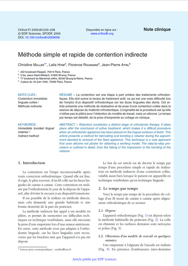 Cela se traduit par des articles dans des revues spécialisées, des communications lors de conférences au sein de la communauté des orthodontistes (lien vers les publications) et une attention particulière accordée aux avancées les plus récentes, techniques et scientifiques, dans l’orthodontie de l’adulte.