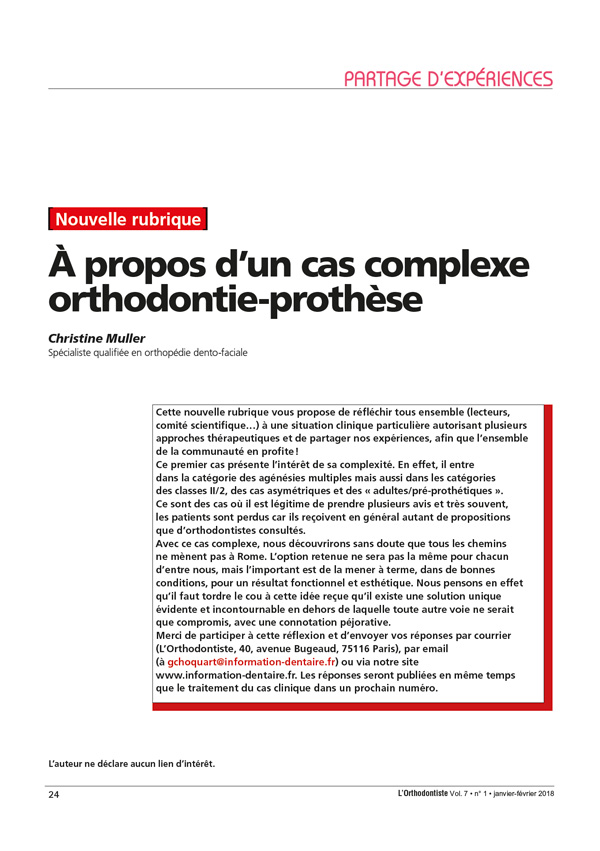 L’orthodontiste se doit d’intégrer cette destruction tissulaire à son diagnostic global, au